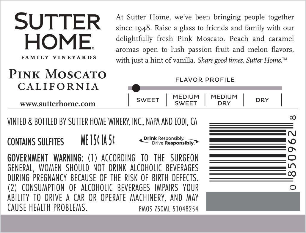 Calories Daily Value 0. Cholesterol 300g-- 300g left. 0mcg Buy Sutter Home Pink Moscato.